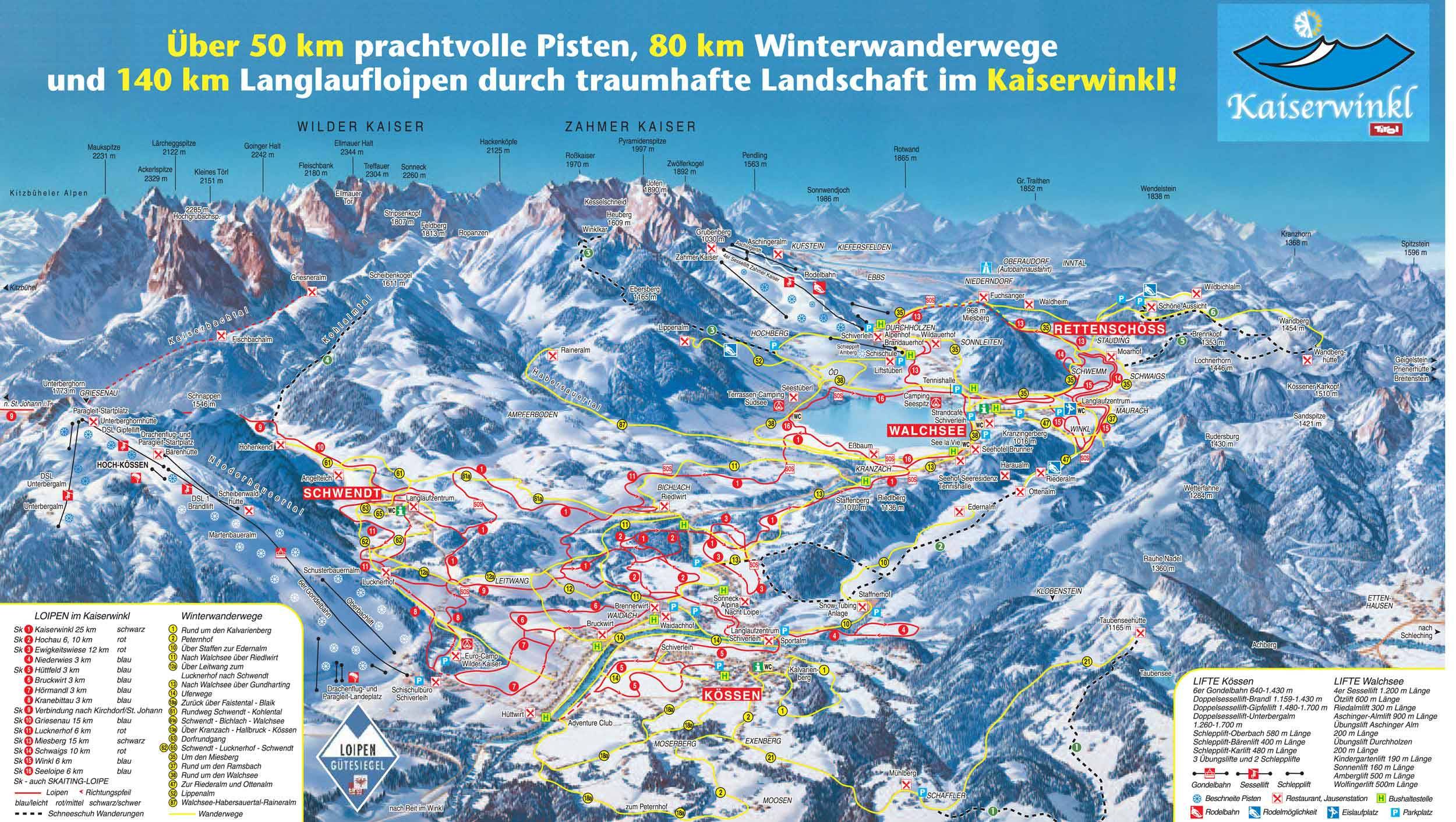 In de Kaiserwinkl hebben de volgende 2 skigebieden een pistekaart of panoramakaart.
