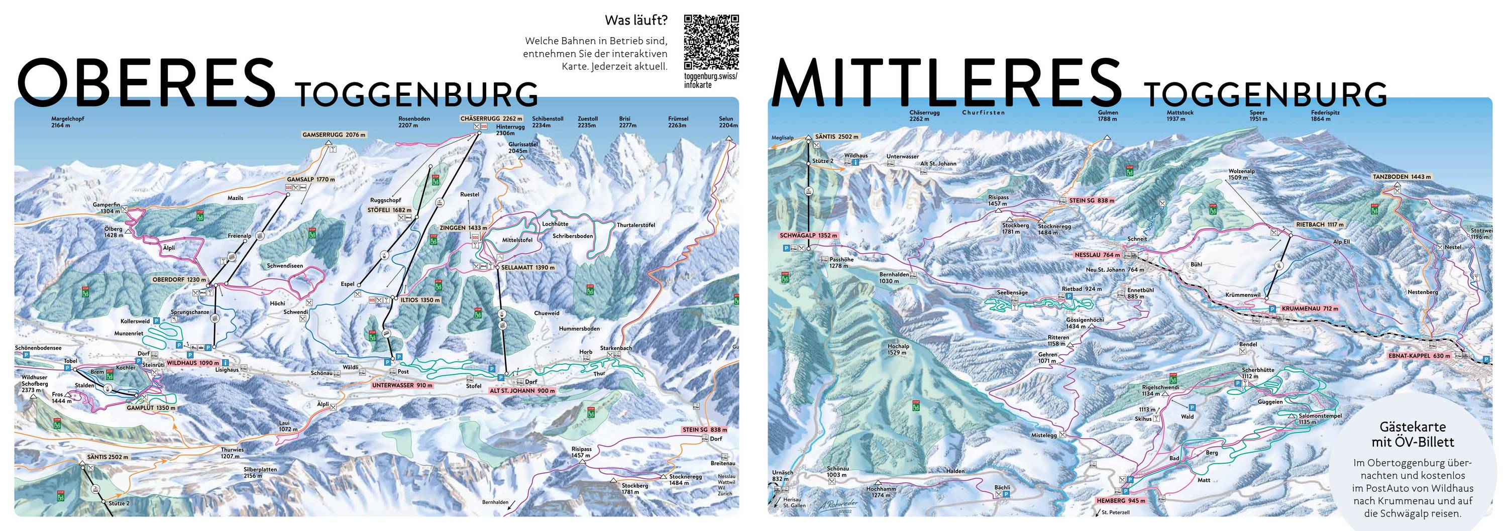 In het Toggenburg hebben de volgende 7 skigebieden een pistekaart of panoramakaart.