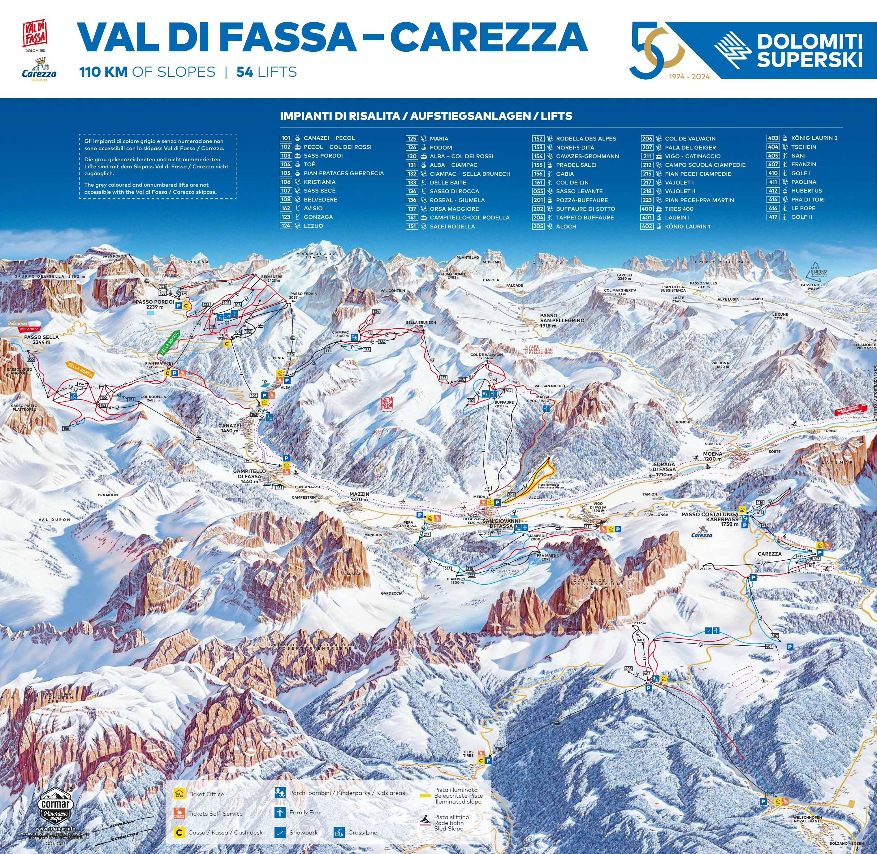 Pistekaart Val di Fassa | Carezza (2024/2025)
