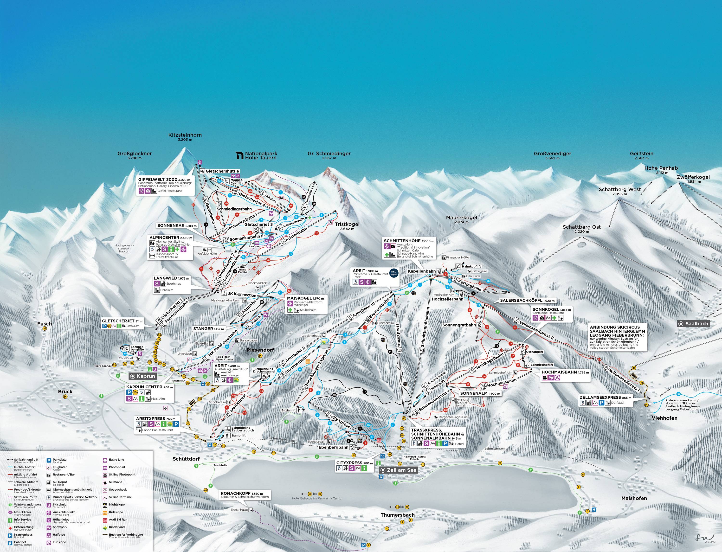 In Zell am See-Kaprun hebben de volgende 3 skigebieden een pistekaart of panoramakaart.
