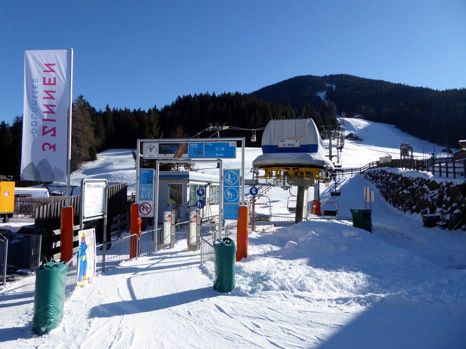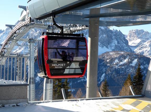 Vanuit de dalen bereik je met moderne gondelbanen het skigebied 3 Zinnen Dolomiten. Sinds het seizoen 2014/2015 verbinden twee ultramoderne achtpersoonsgondelbanen de voorheen gescheiden deelgebieden Helm en Rotwand via de Stiergarten. In het skigebied zelf zijn er stoeltjesliften en sleepliften. De oefengebieden in het dal worden ontsloten door sleepliften. Transportbanden voor beginners en bij de piste naar de Kreuzbergpass maken het aanbod compleet.