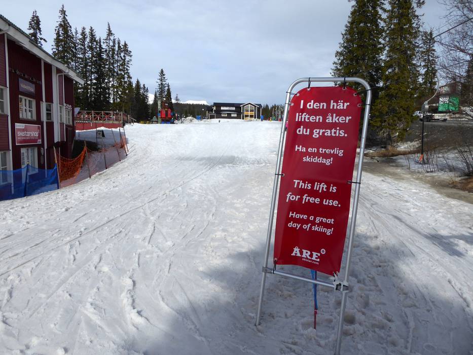 Het skigebied Åre is een paradijs voor beginners. Bijna het hele wintersportgebied is toegankelijk voor beginners via makkelijke en zeer makkelijke pistes. De enige uitzondering is de piste vanaf Sadeln richting Åre. Geoefende beginners kunnen deze brede pistes echter ook aan. In Åre Björnen zijn er veel eenvoudige sleepliften en schotelliften met brede en makkelijke pistes. Transportbanden maken het aanbod hier compleet. De Mårdenliften in Åre Björnen kan volledig gratis worden gebruikt. Rödkullen biedt ook een uitstekend beginnersgebied met transportband en eenvoudige sleepliften en schotelliften. De Rödhakeliften kan hier ook volledig gratis worden gebruikt. Zelfs vanaf de top kun je via makkelijke pistes naar alle dalstations in Åre skiën. Soms verbinden eenvoudige verbindingswegen de verschillende pistes.