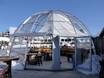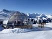 In het Rondodrom bij het Berghaus Standhütte begint het après-ski plezier al in de ochtend met goede muziek en lekkere drankjes. Ook het oog viert mee: dankzij het panoramische glazen dak geniet je gratis van het uitzicht op de Walliser bergwereld in Lenk.