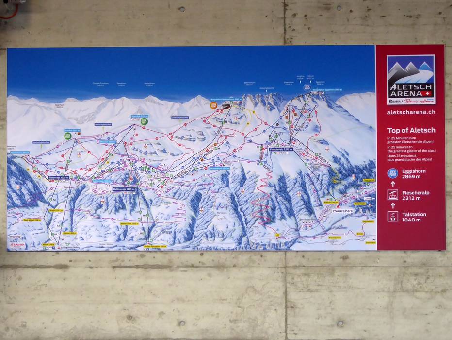 Oriëntatie (pistekaart, informatieborden, bewegwijzering piste) en veiligheid in het skigebied Aletsch Arena – Riederalp/Bettmeralp/Fiesch Eggishorn