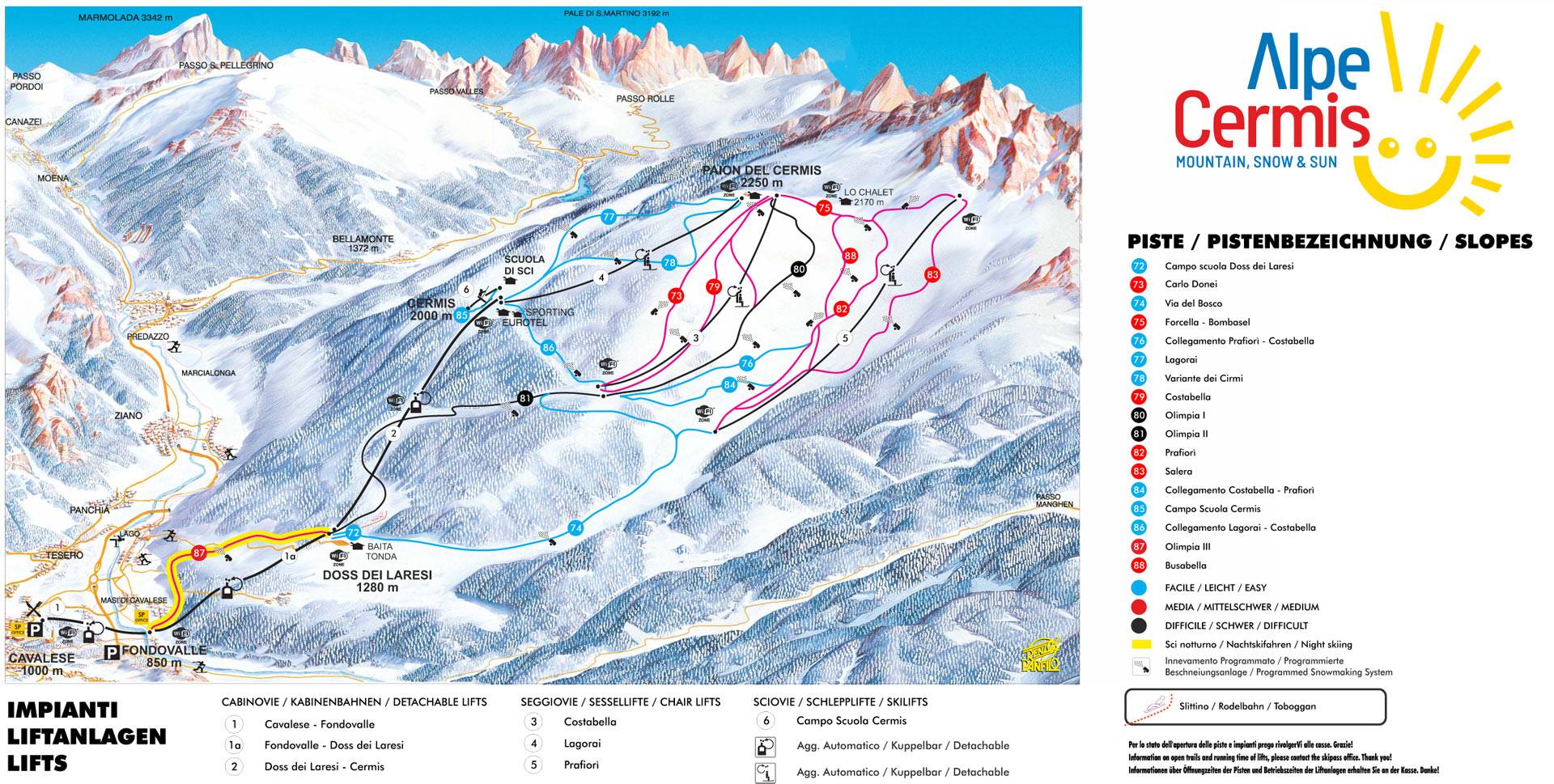 Pistekaart Alpe Cermis – Cavalese seizoen 2025/2026