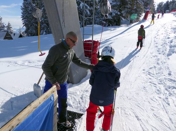 Het personeel in het skigebied Alpe Cermis is vriendelijk en aanwezig bij de liften en kabelbanen. Kleine kinderen krijgen hulp bij het instappen.
