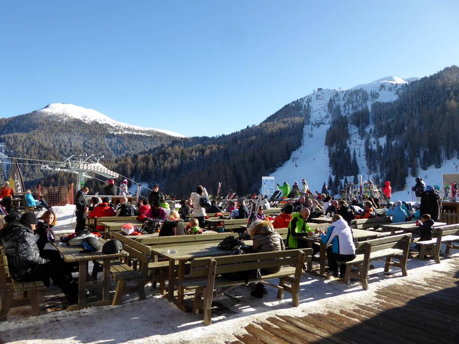 In het skigebied Alpe Lusia kun je in gezellige berghutten pauzeren en vooral specialiteiten uit Trentino proeven. In Chalet Valbona worden in "La Stua" gourmetmenu’s aangeboden. De horecagelegenheden zijn over het hele skigebied verspreid. Enige uitzondering: bij het dalstation Ronchi is er geen horecagelegenheid.