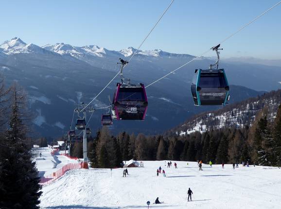 Het skigebied Alpe Lusia is bereikbaar vanuit Ronchi (Moena) en Castelir (Bellamonte) met moderne gondelbanen met een tussenstation. Boven in het skigebied zijn er drie afkoppelbare vierpersoons stoeltjesliften met weerkappen. Alle pistes zijn bereikbaar met de modernste liften, waardoor je beschermd bent tegen wind en weer. Een sleeplift en transportbanden voor kinderen en beginners maken het aanbod compleet.