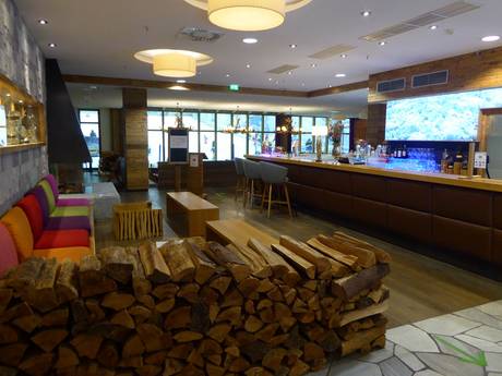 In de Pistenlounge kun je de skidag op je gemak afsluiten. Met een prachtig uitzicht op de piste nodigen de bar of de open haard uit om even lekker te blijven zitten.