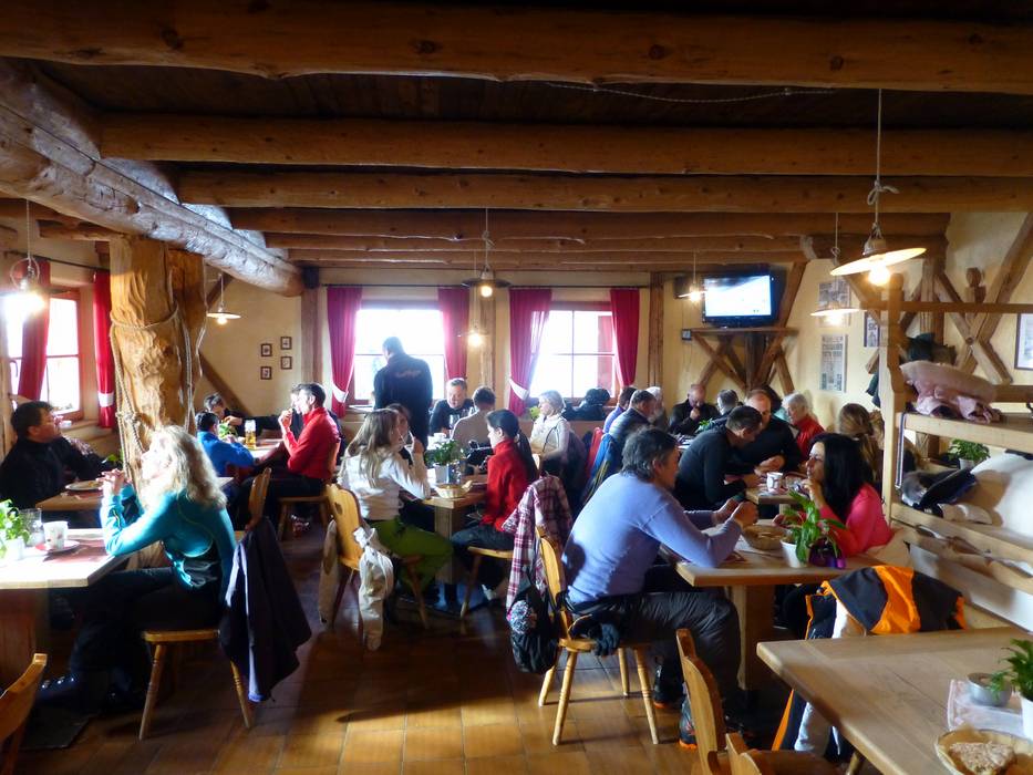 De hut is ingericht in een rustieke stijl en beschikt over een terras waar je ’s middags van de zon kunt genieten. De specialiteit van het huis is biologisch vlees van de eigen boerderij. Geitenkaas, ingelegde groenten en Zuid-Tiroolse spek maken het aanbod compleet.