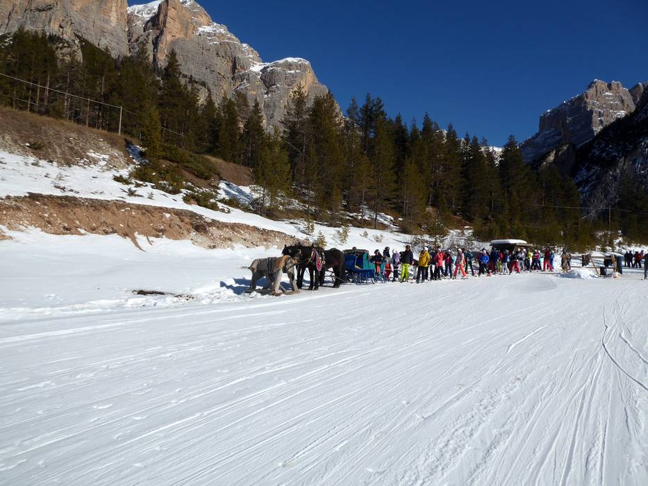 Een mooie ski-afdaling in het UNESCO-werelderfgoed kun je beleven tijdens de Lagazuoi Tour. Je moet helemaal naar Armentarola rijden en vervolgens een taxi nemen naar de Falzarego Pass. Met de kabelbaan ga je dan tot 2.770 m naar het begin van de afdaling. Terug naar het beginpunt kom je met een soort eco-taxi. De skiërs worden aan een touw door paarden over de vallei getrokken van de Capanna Alpina hut richting Armentarola.