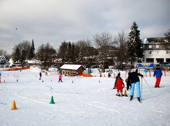 Het kinderland van de skischool ligt ideaal direct aan de hoofdparkeerplaats, tegenover de skiverhuur en in het dorpscentrum en beschikt over een transportband. Na de eerste geslaagde pogingen kun je de kleintjes gerust op de direct aangrenzende Kapellenhang laten skiën. De korte afstanden in het dorp zijn ideaal voor families, alleen het feit dat je de hoofdstraat moet oversteken is wat minder.