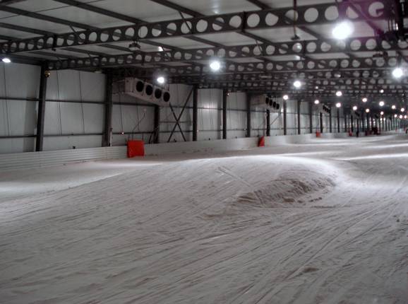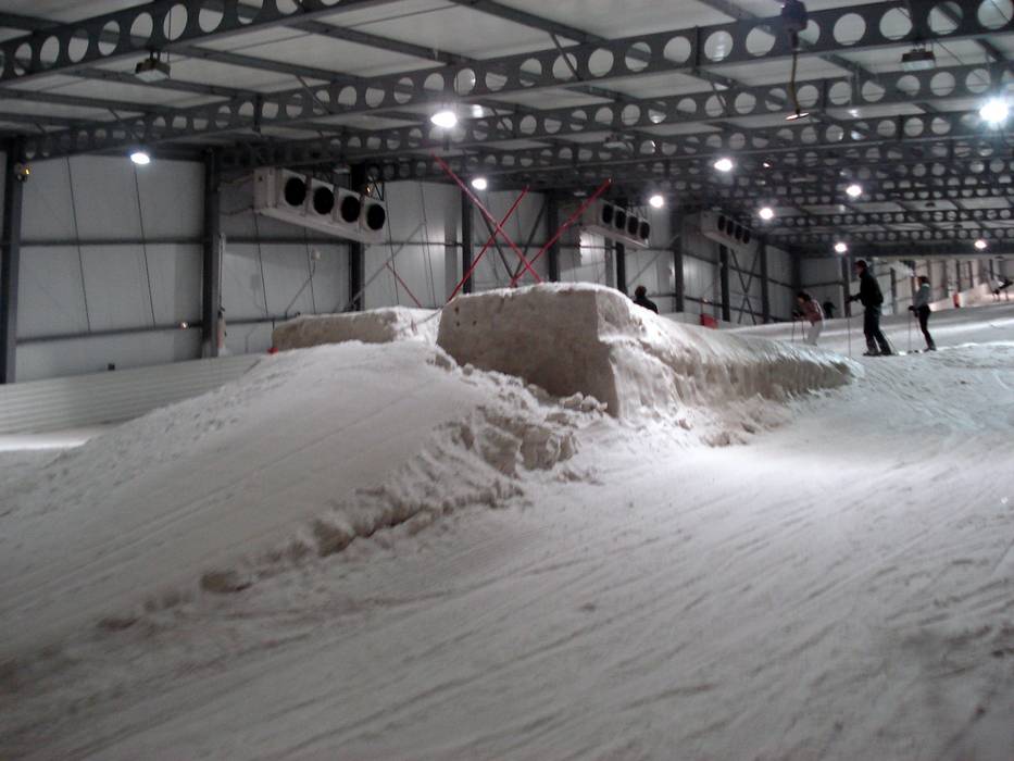 Snowboarders voelen zich thuis in de skihal. Er is weliswaar geen echte funpark of halfpipe, maar op de 620 meter lange piste zijn er golven en een schans.