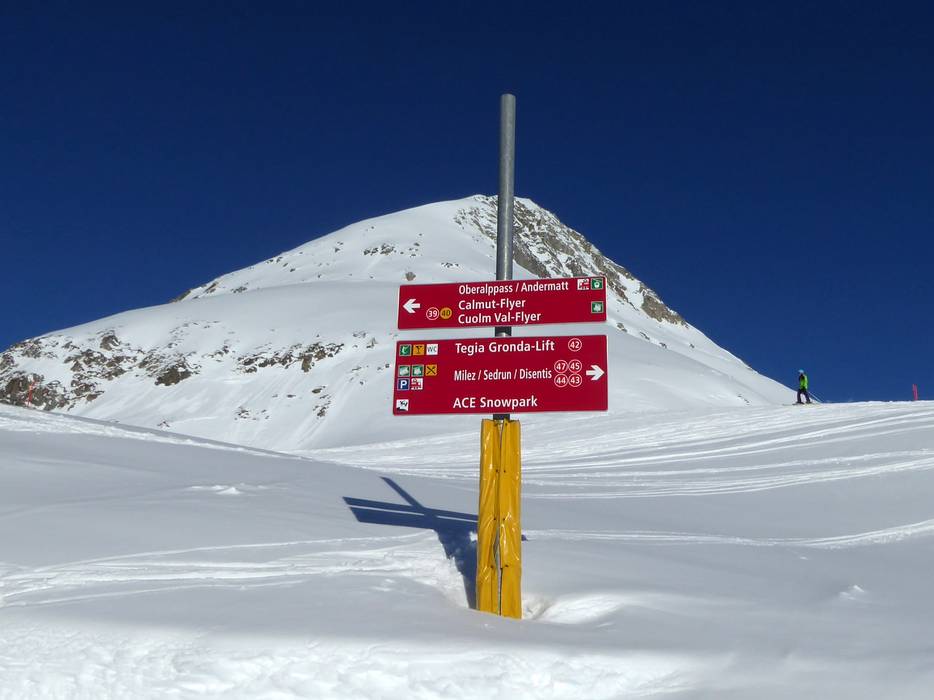 Oriëntatie (pistekaart, informatieborden, bewegwijzering piste) en veiligheid in het skigebied Andermatt/Oberalp/Sedrun