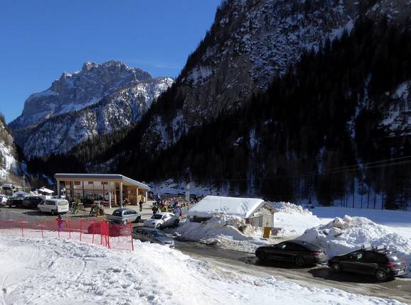 Het vertrekpunt is Malga Ciapela aan de voet van de Marmolada. Er is sneeuwkanonnen.