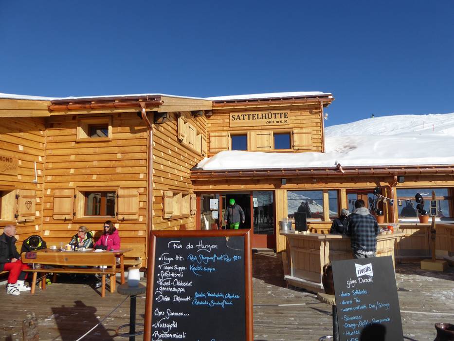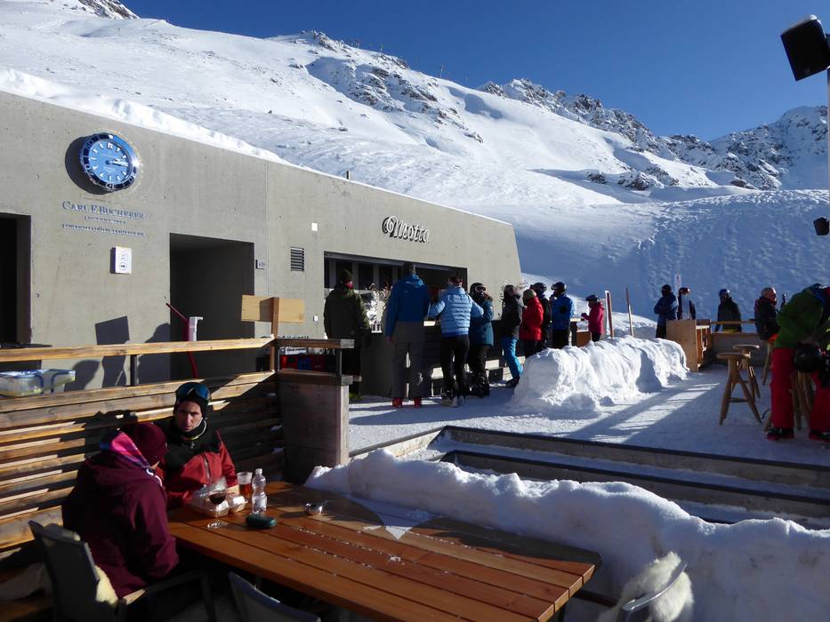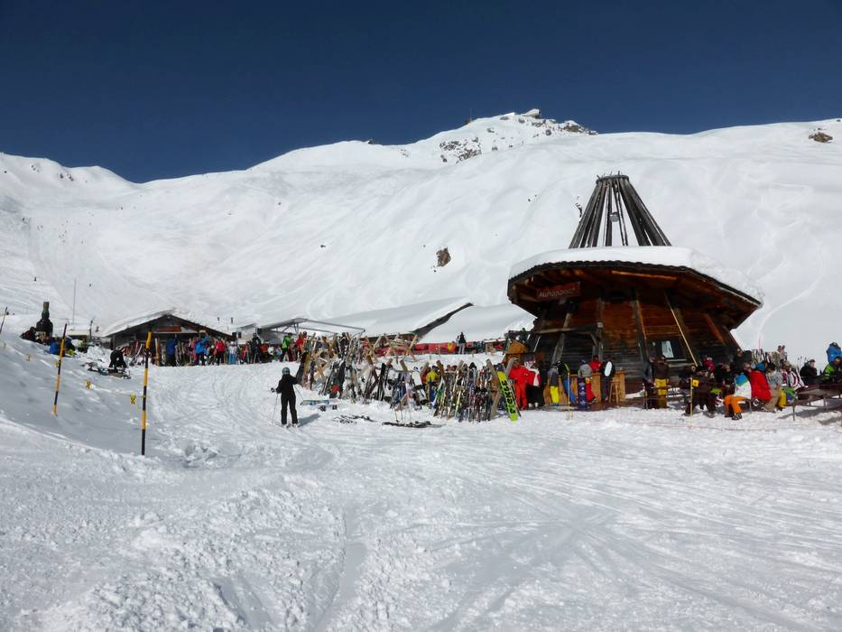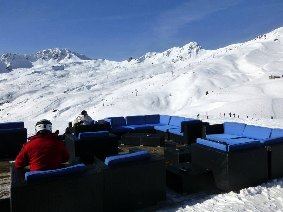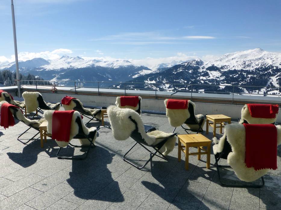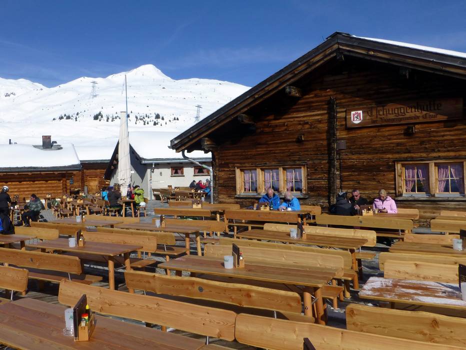 De Carmennahütte in Arosa biedt een geweldige sfeer en is een goed startpunt richting après-ski in het Munggaloch. Bij mooi weer staan de ligstoelen op het terras klaar.
