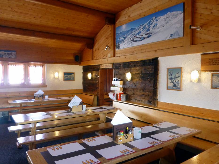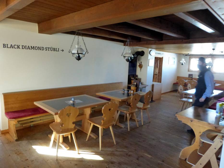 De typische Zwitserse hut biedt huisgemaakte gerechten en een prachtig uitzicht vanaf het grote zonneterras. Op koude dagen wacht het gezellige Black Diamond Stübli.