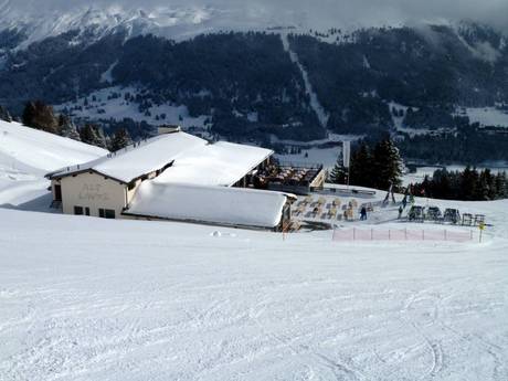 Van het bedieningsrestaurant met verfijnde keuken en wijnselectie tot gezellige kleine hutten en het zelfbedieningsrestaurant – alle categorieën van eetgelegenheden zijn verspreid over het hele skigebied. Over het algemeen is de keuken echter gebaseerd op typische Graubündner specialiteiten.