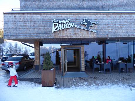 Het skigebied biedt een aantrekkelijke keuze aan gezellige hutten, chique bergrestaurants, zonneterrassen en sneeuwbars. Het panoramarestaurant Hoadl-Haus op het zonnedek van de Hoadl is al uitgeroepen tot het populairste bergrestaurant en bekroond met de ISR Architektur Award. Het windbeschutte zonneterras bij het Hoadl-Haus is een absolute hotspot voor fijnproevers. Daarnaast nodigt de Schirmbar uit voor een gezellige pauze.