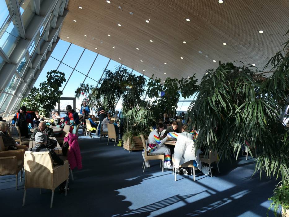 Fascinerend uitzicht op de bergen of het Inndal. Bij geschikt weer wordt aan de buitenzijde de glazen gevel omhoog geschoven: volledig panorama – een prachtige plek om te eten en het grootste overdekte zonneterras van Oostenrijk. Het gebouw won de ISR Architectuurprijs 2009. Het herbergt een zelfbedieningsrestaurant met een gevarieerd aanbod en 600 zitplaatsen, evenals een klein bedieningsrestaurant.
