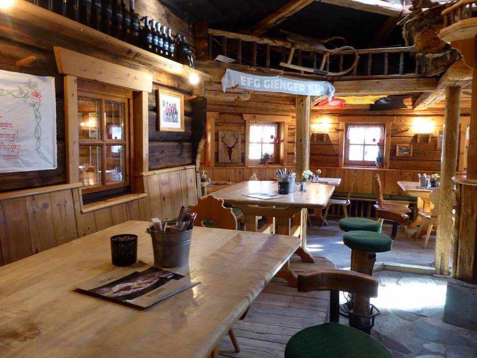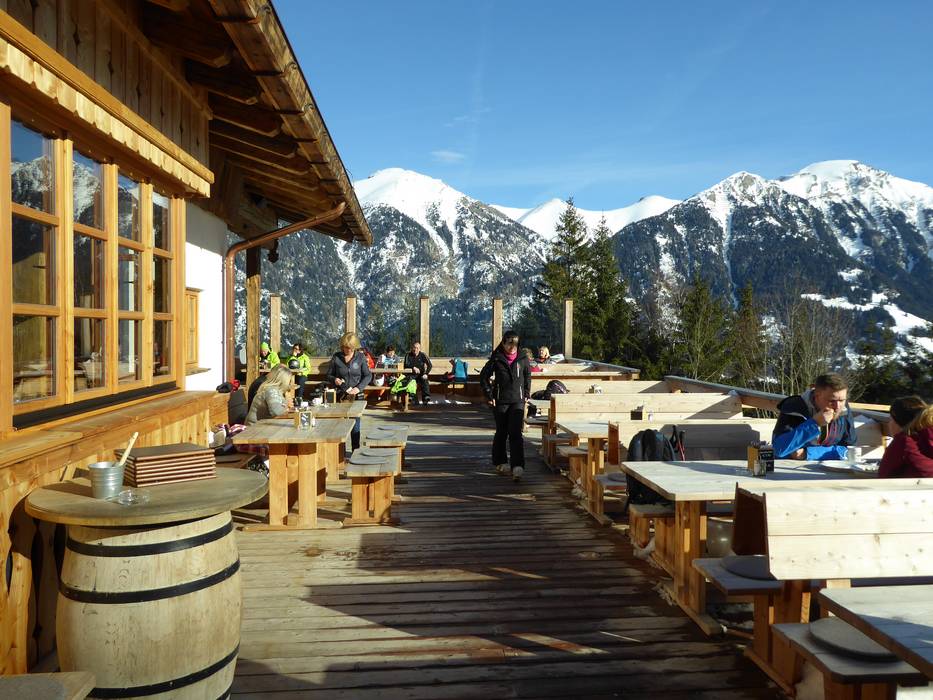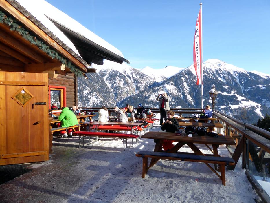 De rustieke hut biedt heerlijk eten en goede wijnen. Vanaf het grote zonneterras heb je een prachtig uitzicht over het Angertal.