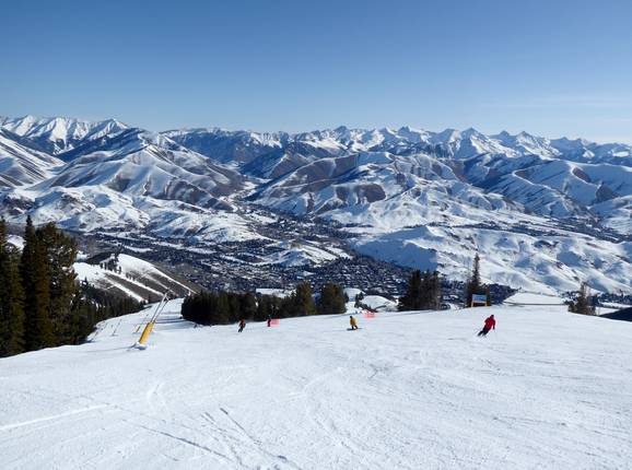 Vanaf de top van de Bald Mountain leiden prachtige afdalingen over verschillende bergflanken naar het dal. Pistes van alle moeilijkheidsgraden lopen meestal door bosrijke corridors. Tijdens het skiën en snowboarden heb je altijd het schitterende panorama van de Sawtooth Mountains voor je. Bovendien word je meestal beloond met mooi weer, want op 120 van de 150 skidagen schijnt de zon in Sun Valley.
