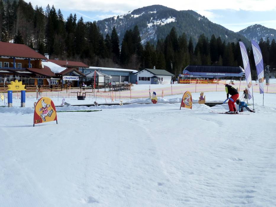 Direct aan het dalstation van de Schelpenbahn bevindt zich Baldi' Kinderland van de Schneesportschule Balderschwang Hochallgäu. Hier wachten een transportband en grappige figuren op de kleintjes.