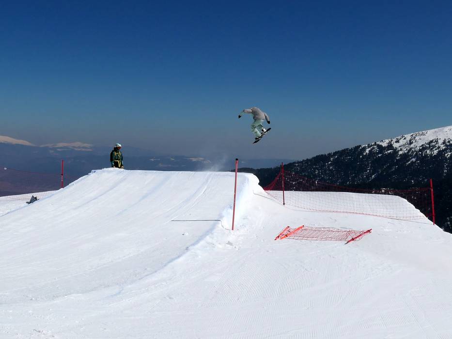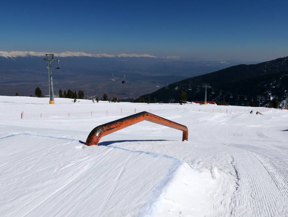 Het snowpark ligt zonnig aan de stoeltjeslift Plato. Grote en kleine kickers, boxen en rails zorgen voor adrenaline bij beginners en professionals.