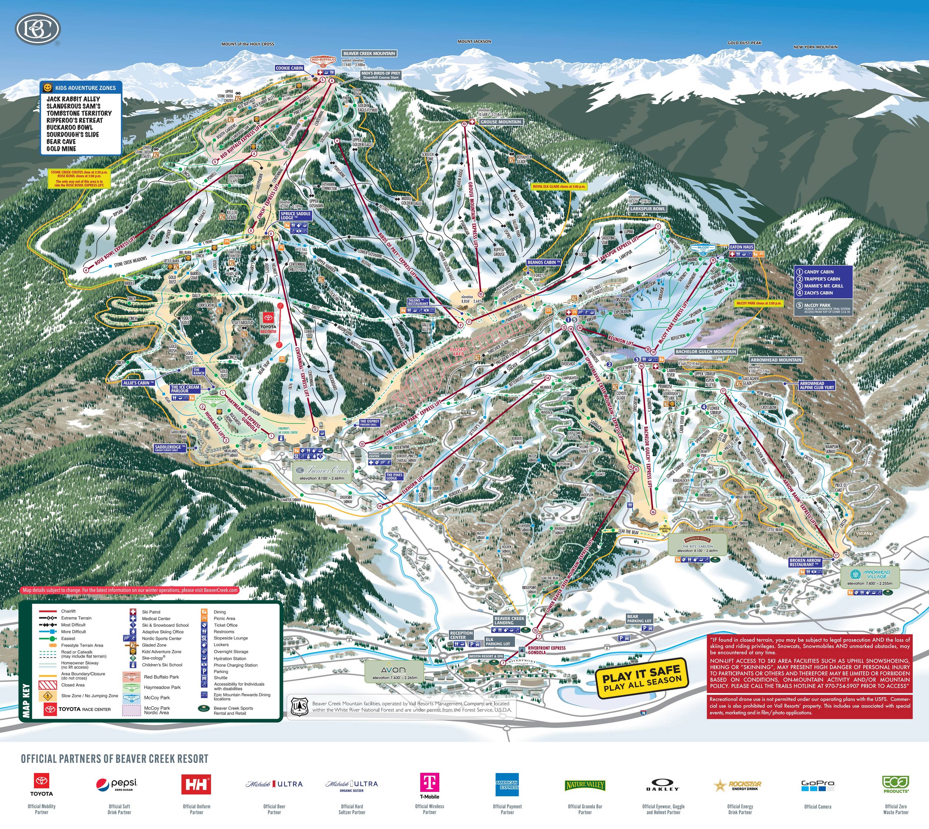 Bij bijna alle bergstations zijn actuele informatie over de geprepareerde afdalingen en de liftstatus beschikbaar. De pistes zijn allemaal duidelijk aangegeven met namen. Je vindt gemakkelijk je weg en keert altijd weer terug naar Beaver Creek Village.