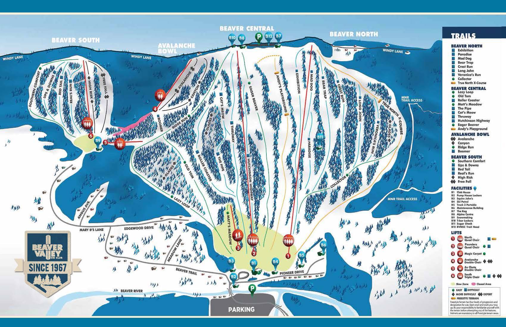 Pistekaart Beaver Valley Ski Club seizoen 2024/2025