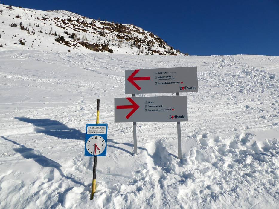 Oriëntatie (pistekaart, informatieborden, bewegwijzering piste) en veiligheid in het skigebied Bellwald