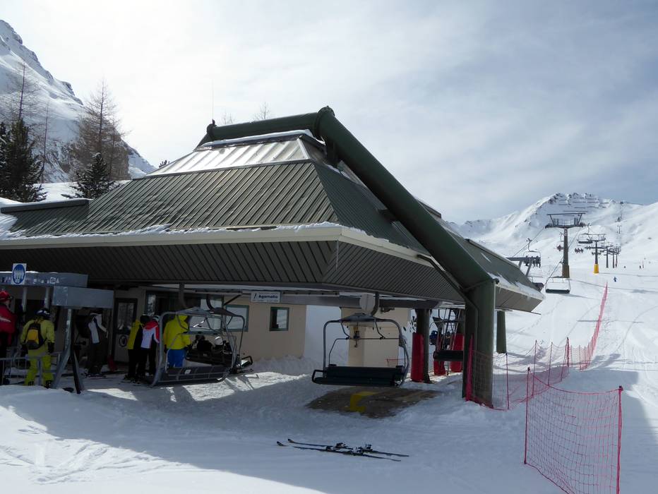 De 4-persoons stoeltjeslift Sella Brunech heeft een bergstation halverwege.