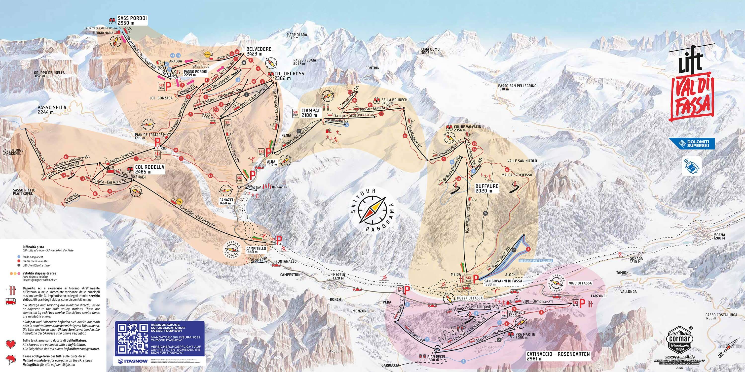 Pistekaart Belvedere/Col Rodella/Ciampac/Buffaure – Canazei/Campitello/Alba/Pozza di Fassa seizoen 2025/2026
