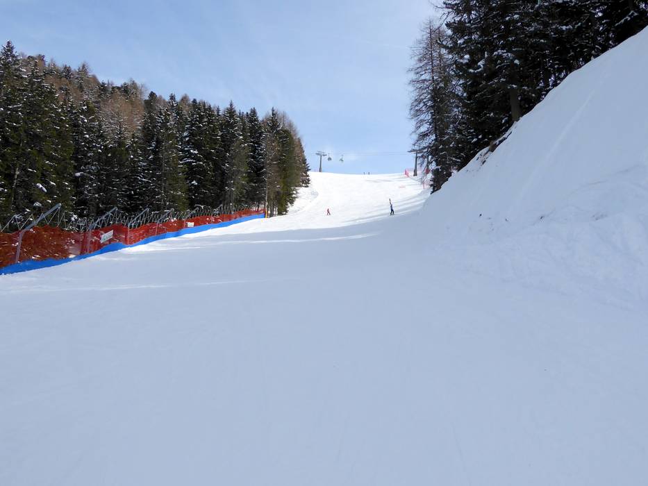 De moeilijke piste loopt van het bergstation Buffaure naar het dalstation in Pozza di Fassa.