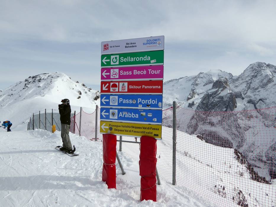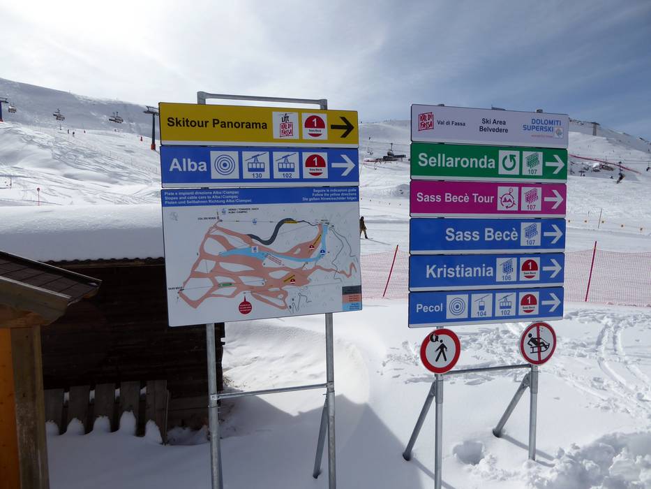 Alle pistes zijn goed bewegwijzerd en je vindt actuele informatie over de afzonderlijke liften en geopende pistes. De skitocht Panorama en de Sellaronda zijn bijna overal goed aangegeven. Je vindt gemakkelijk je weg in het hele skigebied.