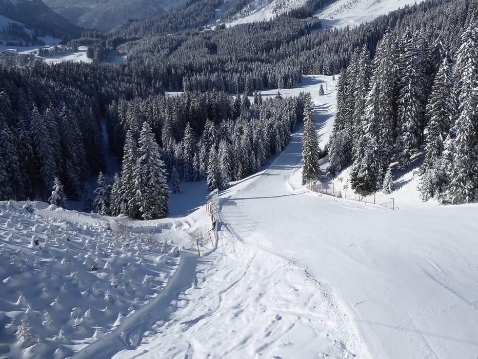Steile piste onder de Panoramabahn Rastkopf, die in het onderste deel overgaat in een middelzware piste.