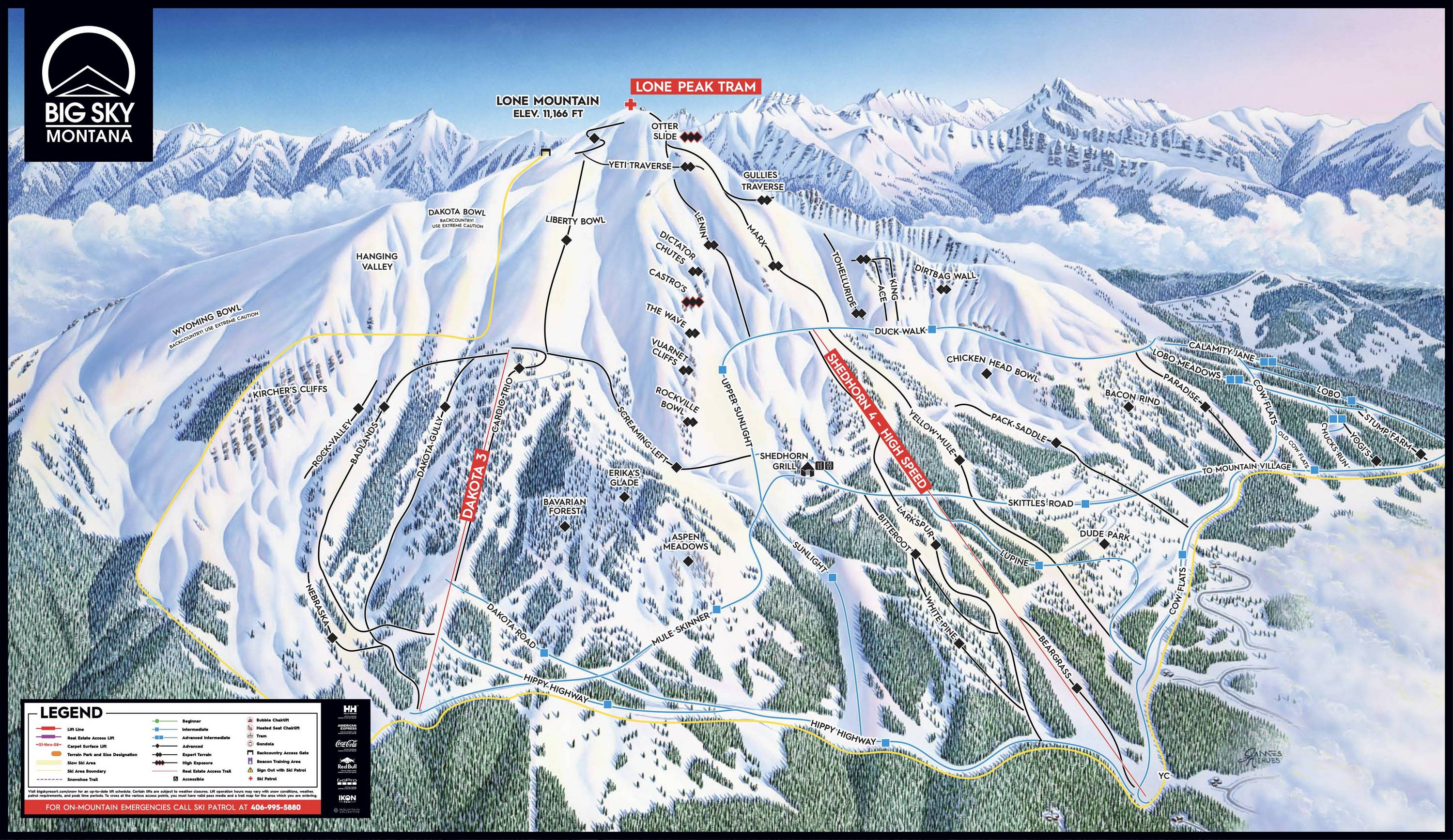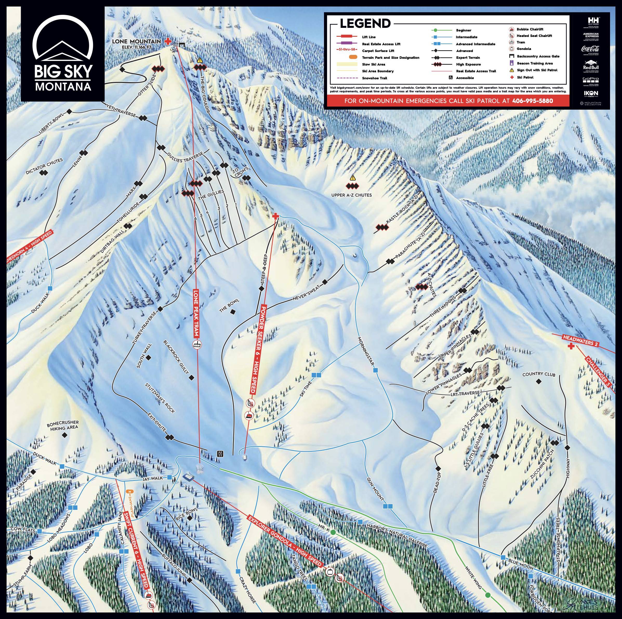 Pistekaart Big Sky Resort seizoen 2025/2026