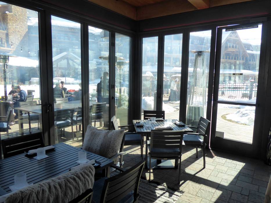 Het exclusieve restaurant biedt regionale en hoogwaardige gerechten. Het vlees komt van geselecteerde boerderijen uit Montana. Een goede wijnkaart en een uitnodigende bar maken het aanbod compleet. Bij mooi weer kun je op het terras zitten en genieten van het uitzicht op de Lone Mountain.