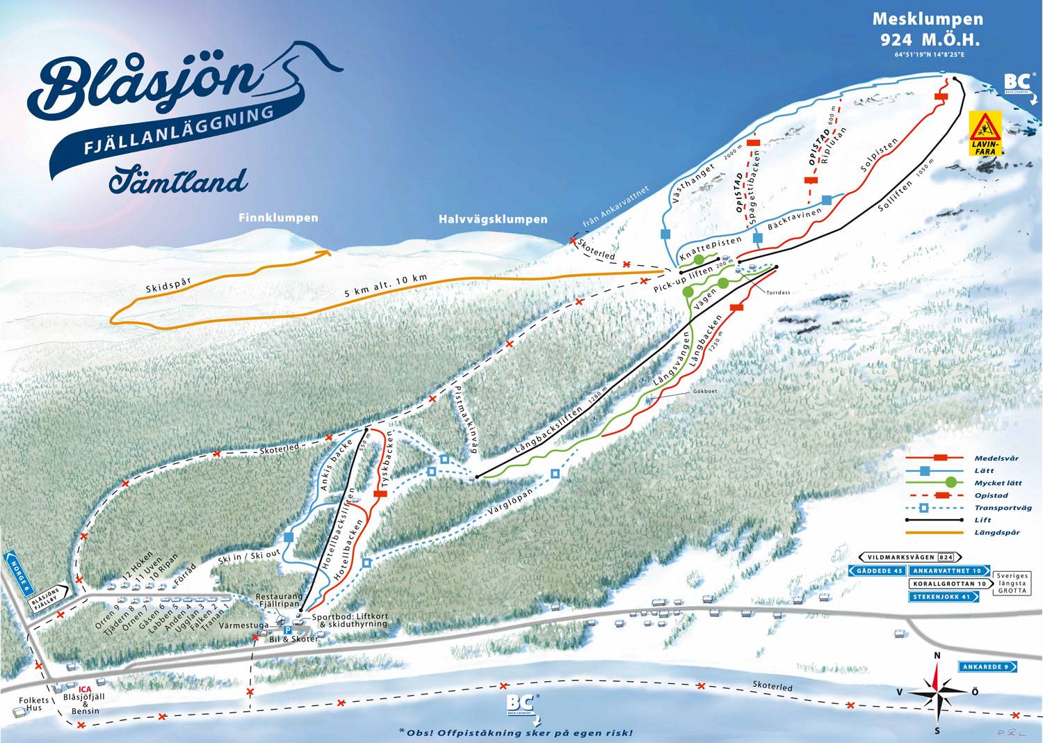 Pistekaart van het skigebied Blåsjön – Mesklumpen
