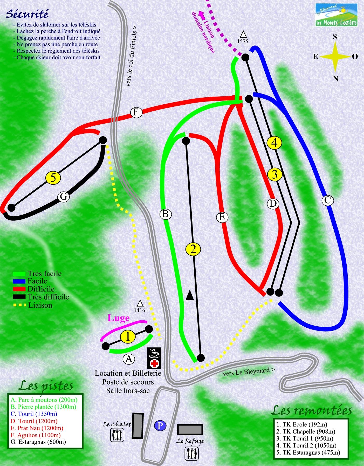 Pistekaart Bleymard – Mont Lozère seizoen 2024/2025