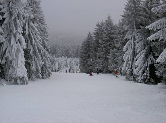 De dalafdaling Krähennest naar Hahnenklee is volledig besneeuwd.