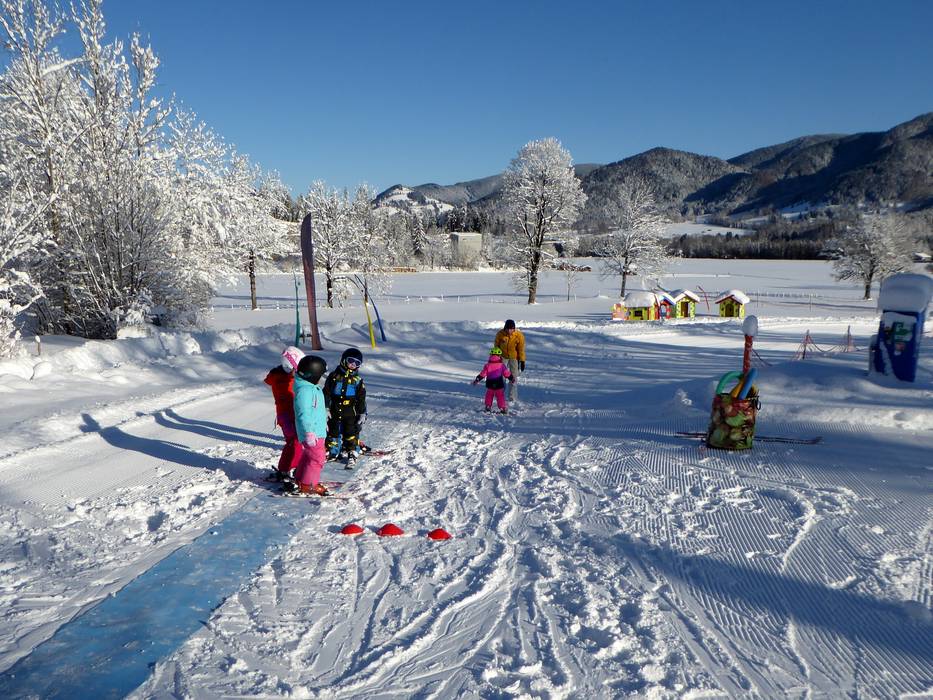 Op de Draxlhang in Wegscheid wacht het KinderSchneeLand met transportbanden en veel skileraars van de skischool Lenggries. Een ideale start voor de eerste bochten is hier gegarandeerd.