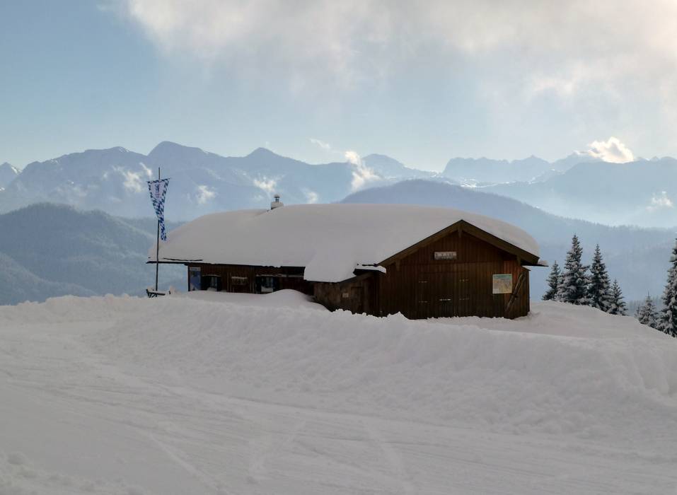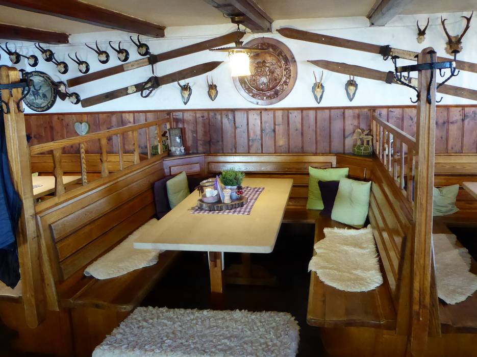 Gezellige berghut met tegelkachel en typische Beierse gerechten. Bij zonnig weer lonkt het zonneterras.