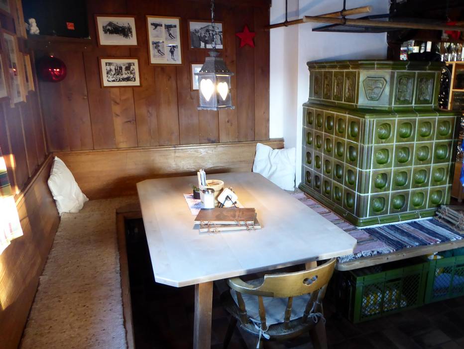 Hier kun je de huttenwaard over de schouder meekijken tijdens het koken. In de gezellige stube of op het zonneterras word je verwend met Beierse specialiteiten. Zeer aan te bevelen zijn de verse Weißwürste met Brezn.