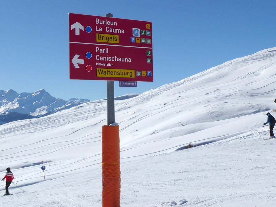 Oriëntatie (pistekaart, informatieborden, bewegwijzering piste) en veiligheid in het skigebied Brigels/Waltensburg/Andiast