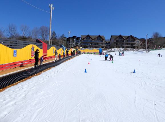 Bij het dalstation Mont Soleil bevindt zich een afgebakend oefenterrein met een transportband. Hier kunnen de kleintjes hun eerste bochten oefenen en kleine hindernissen omzeilen. Plezier voor het hele gezin.