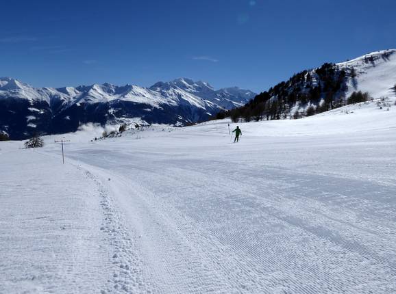 In het onderste gedeelte bij Bürchen voelen beginners zich op hun gemak. Hier wacht het uitgestrekte Kinderparadijs Bürchen-Bodmen met zijn oefenliften. Bij het dalstation van de Moosalp-Express vind je het ontmoetingspunt van de skischool Bürchen-Törbel en een klein beginnersgebied. De skileraars begeleiden opvallend zorgvuldig door het skigebied, dat in het bovenste deel toch enkele uitdagingen biedt en alleen onder begeleiding of door gevorderde beginners bereden zou moeten worden. Ook het liftpersoneel let er goed op dat ook beginners hier zorgeloos kunnen skiën.