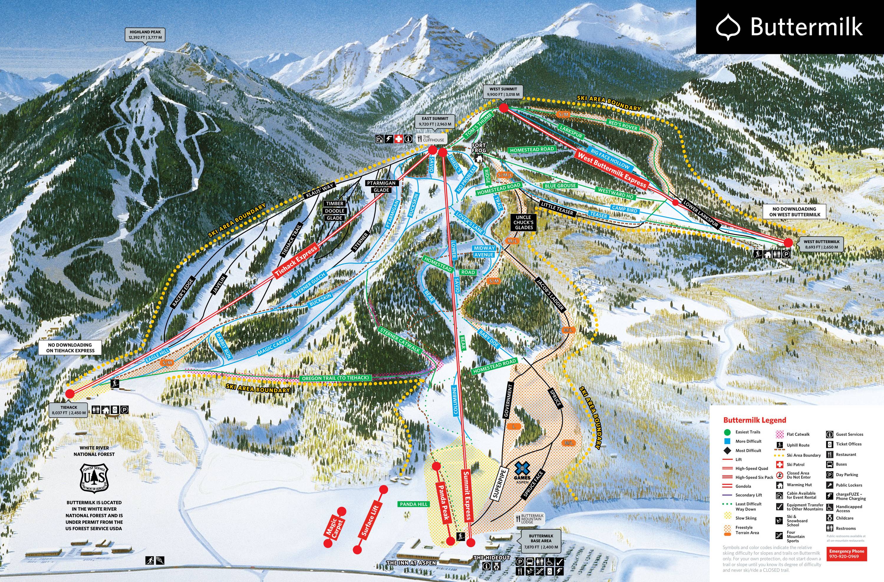 Oriëntatie (pistekaart, informatieborden, bewegwijzering piste) en veiligheid in het skigebied Buttermilk Mountain