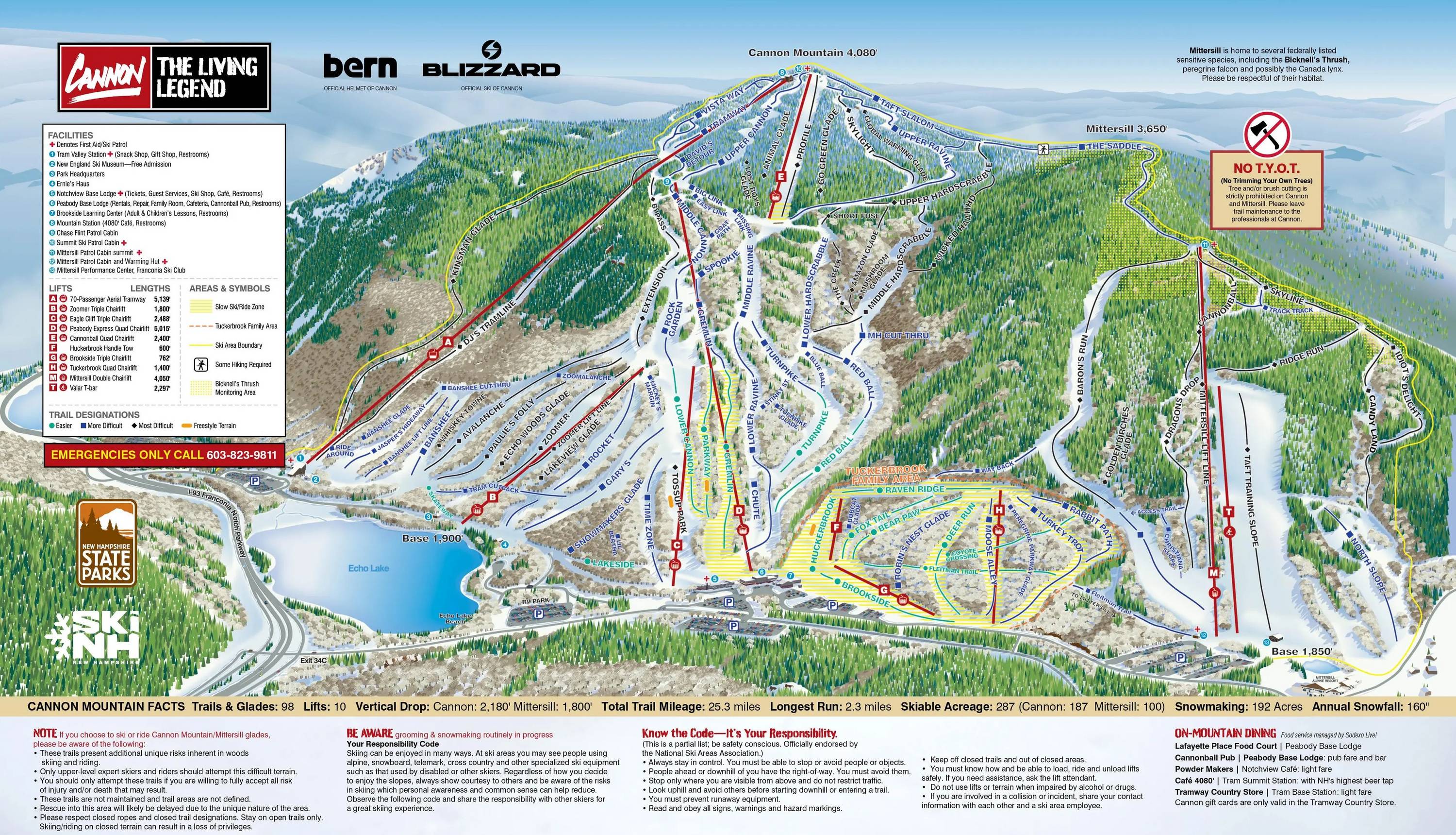 Pistekaart Cannon Mountain seizoen 2024/2025