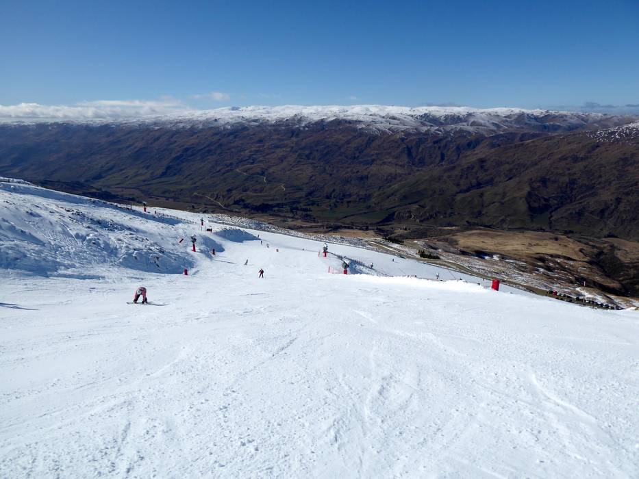 Het laagste punt in het skigebied van Cardrona is het dalstation van de Valley View Quad. Hier komt men vanaf bijna alle afdalingen uit.